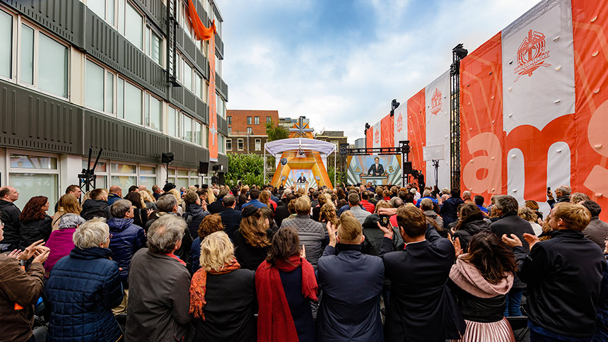 Le début des festivités ont touché presque chaque note de l’éventail culturel de la ville, du rythme classique de « L’ode des canaux d’Amsterdam » aux tambours Suriname et une musique électronique soulignant le folklore musicale de la ville du nouveau millénaire. C’était aussi un jour annonçant la diversité et les partenariats, menés par d’éminents dignitaires représentant la croyance collective dans un Amsterdam plus fort, un Amsterdam unis.