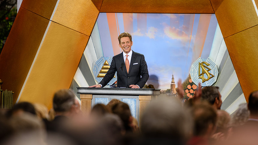 Pour cette occasion, M. David Miscavige, le chef ecclésiastique de la religion de Scientology, a déclaré : « Avant que ce ruban ne tombe, prenons un moment pour contempler votre place dans l’histoire néerlandaise, sans parler de sa mythologie. Car vous ne faites plus voile vers le large et dans le sens du vent et vous ne contournez plus les promontoires sur le chemin du retour. Au contraire, vous êtes rivés vers l’extérieur, sur le cours de l’éternité . »