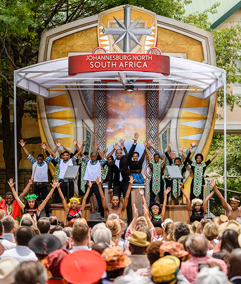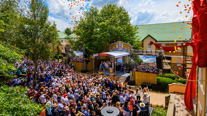 Pour célébrer l’ouverture, M. David Miscavige, le leader ecclésiastique de la religion de Scientology, a accueilli les participants en référant au souhait, vieux de 50 ans, du fondateur de la Scientology, L. Ron Hubbard (LRH). Insuffler à un Afrique du Sud ségrégué, bon sens et orientation. « Si quelqu’un demande ce que signifie de suivre le rêve de LRH “Un homme, une voix” à “un pays, un but” et de African Power à African Pride ; Afrique pour toujours à Afrique en vie, eh bien, tout ce que vous avez à faire est de considérer ces mots “Afrique éternellement” et “Afrique indéfiniment” car c’est là que les portes aux lions deviennent les portes vers l’infini. »
