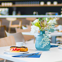 Le café offre un lieu de réunion pour ceux qui participent à des activités, comme pour les paroissiens pendant les pauses dans leurs services de Scientology.