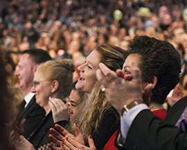 « Il n’a jamais été aussi prédominant, » a déclaré M. Miscavige aux scientologues rassemblés. « Jamais aussi clairement manifeste. Jamais plus proche de la conscience des sept milliards d’habitants du monde. Et donc, sans exagérer et sans en faire trop, on retrouve LRH partout ce soir, et ceci est un fait. »