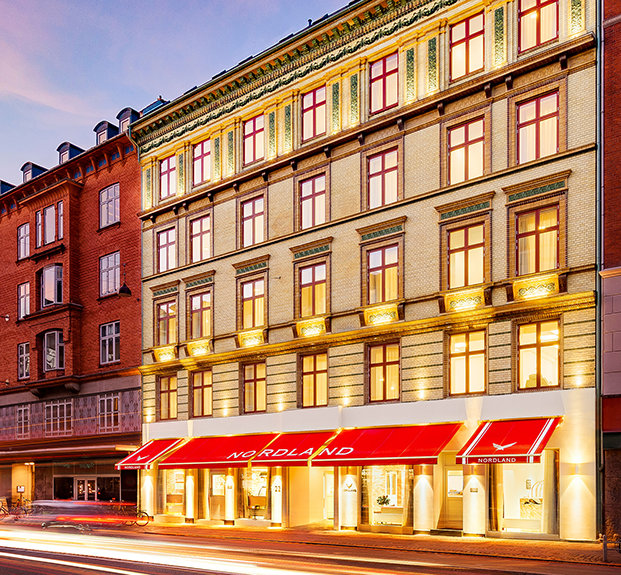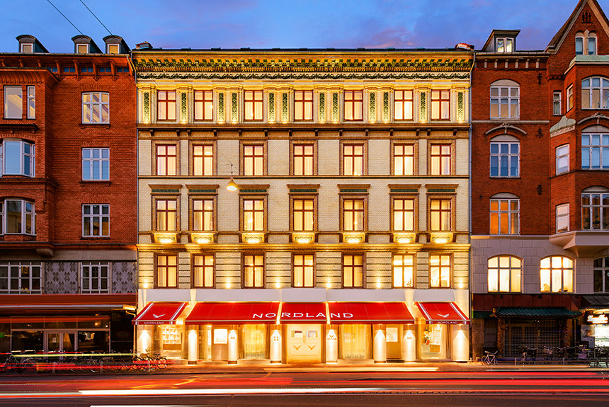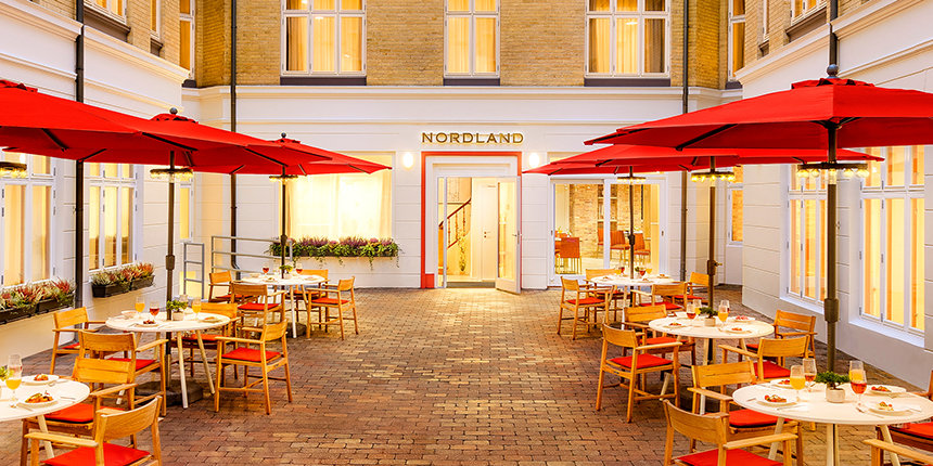 Le Nordland est situé dans un bâtiment néoclassique historique à quelques minutes des jardins emblématiques de Tivoli à Copenhague, le deuxième plus vieux parc d’attractions au monde. Le bâtiment, construit à l’origine en 1889, a été entièrement préservé par l’Église, y compris son toit en ardoise et sa façade en briques et en terre cuite. La cour en briques de Copenhague a également été remise en parfait état.