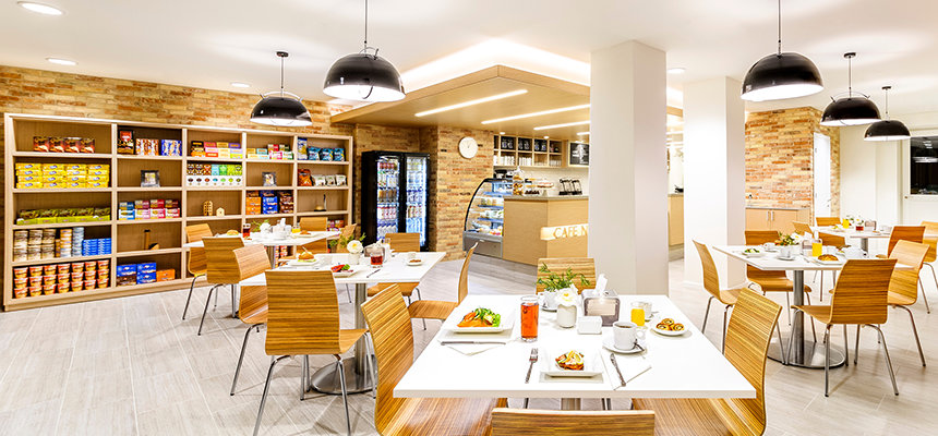 La retraite religieuse comprend plus de 70 chambres bien aménagées et possède deux restaurants offrant une sélection très variée pour satisfaire des paroissiens de 30 pays. Le café Natur offre de délicieux snacks toute la journée pour ceux qui font une pause entre le conseil spirituel ou la formation de Scientology, tandis que le restaurant Magnolia propose aussi aux paroissiens une cuisine de style buffet et un menu à la carte.